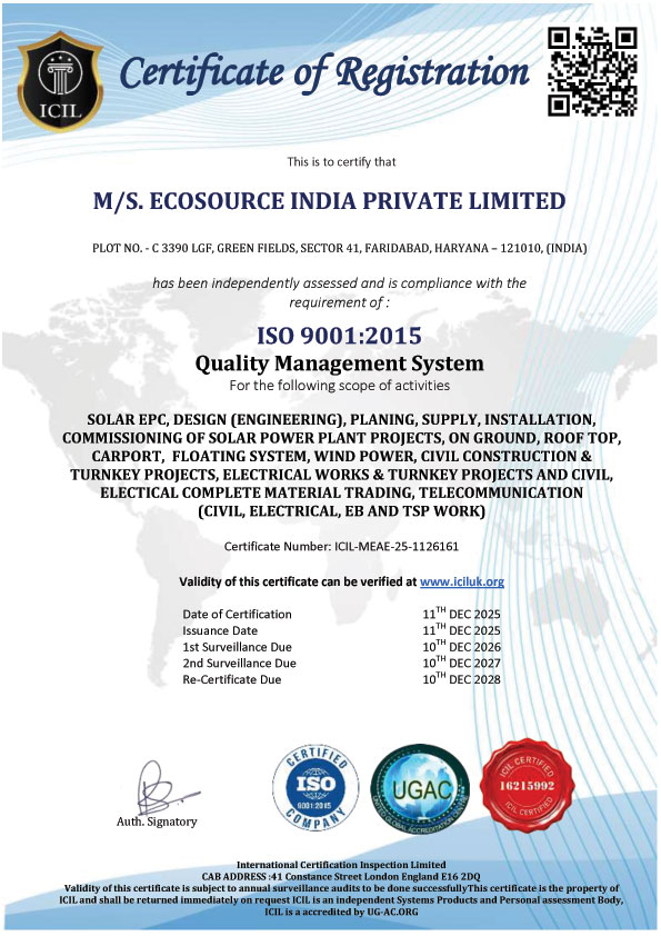 Ecosource India Pvt Ltd. is committed to delivering reliable, sustainable, and cost-effective renewable energy solutions. We specialize in designing, installing, and maintaining high-performance solar power systems for residential, commercial, and industrial clients. With a focus on innovation, quality, and customer satisfaction, our expert team ensures every project meets the highest safety and efficiency standards. From site assessment to after-sales support, we provide end-to-end energy solutions tailored to your needs. At Ecosource Energy, we believe in reducing carbon footprints while empowering communities and businesses with clean, dependable power for a greener future.