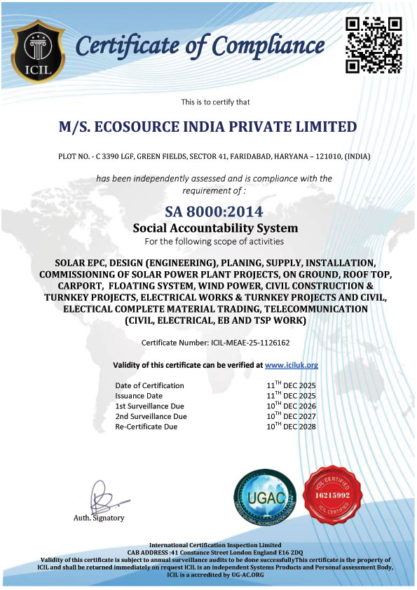 Ecosource India Pvt Ltd. is committed to delivering reliable, sustainable, and cost-effective renewable energy solutions. We specialize in designing, installing, and maintaining high-performance solar power systems for residential, commercial, and industrial clients. With a focus on innovation, quality, and customer satisfaction, our expert team ensures every project meets the highest safety and efficiency standards. From site assessment to after-sales support, we provide end-to-end energy solutions tailored to your needs. At Ecosource Energy, we believe in reducing carbon footprints while empowering communities and businesses with clean, dependable power for a greener future.